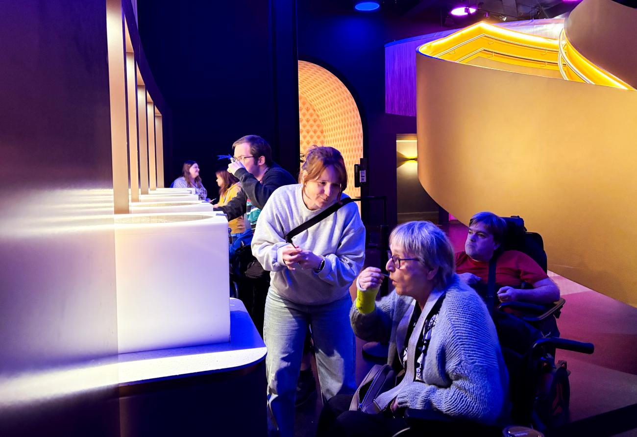 The entire museum is wheelchair accessible with wide corridors and lifts and wheelchair-accessible toilets. People with reduced mobility or who are wheelchair-bound can use the entrance to the left of the main entrance to Chocolate Nation. There is a special lift there. Our staff will be happy to help you on site.